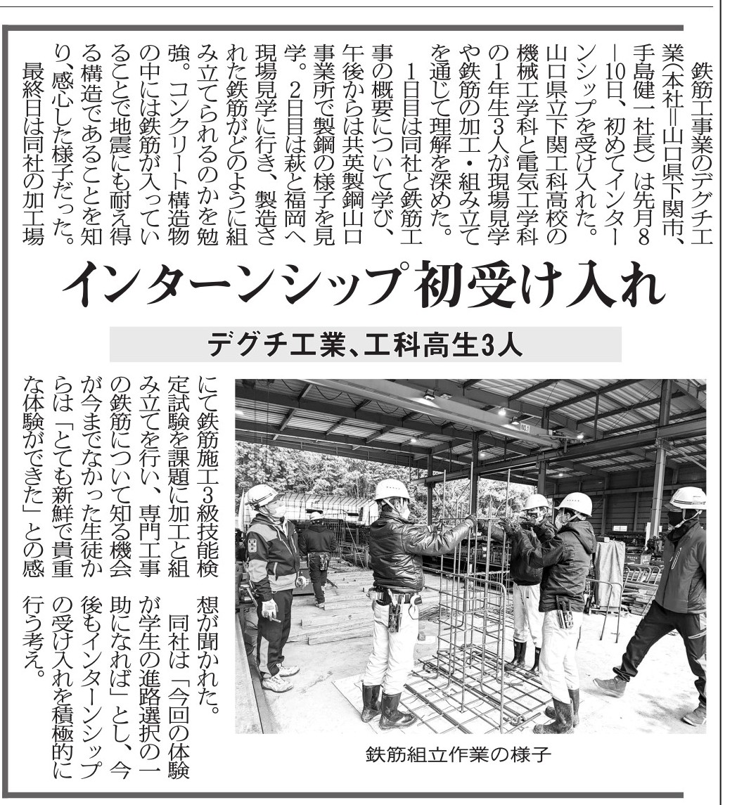 - 3/30 産業新聞掲載 下関工科高校インターンシップ